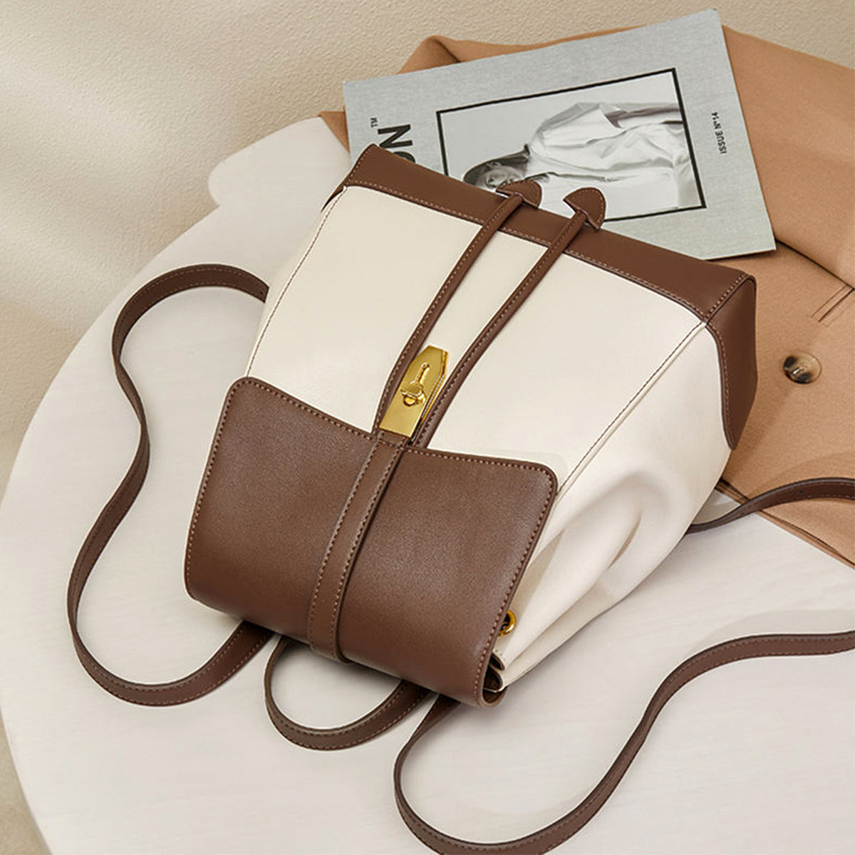 This colorblock drawstring backpack combines practicality with style. It not only meets your daily storage needs but also adds a fashionable accent to your look.